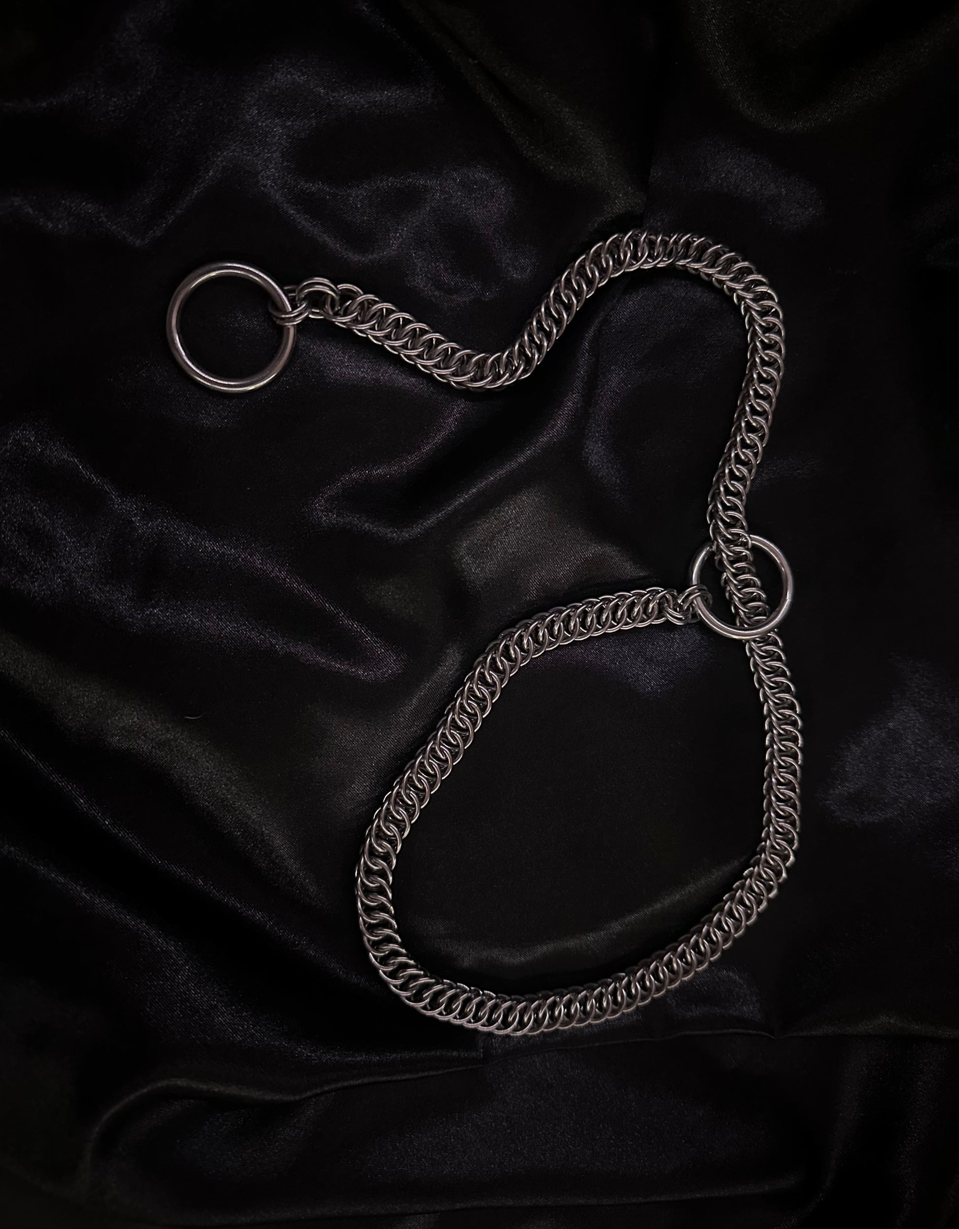 Indulge in dark elegance with our Oedipus Slip Necklace. Handwoven with heavy duty chainmail and crafted from durable stainless steel, this necklace can withstand 24/7 wear and even water. Make a bold statement with this unique accessory.